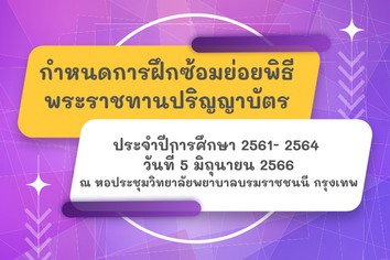 ข่าวการศึกษา กำหนดการฝึกซ้อมย่อยพิธีพระราชทานปริญญาบัตร ประจำปีการศึกษา 2561- 2564 อ่านต่อ » พฤษภาคม 9, 2023