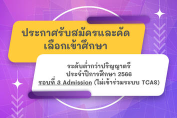 ข่าวการศึกษา ประกาศการรับสมัครและคัดเลือกบุคคลเข้าศึกษา หลักสูตรระดับต่ำกว่าปริญญาตรี ปีการศึกษา 2566 รอบที่ 3 Admission (ไม่เข้าร่วมระบบ TCAS) อ่านต่อ » พฤษภาคม 9, 2023