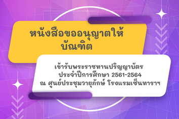 ข่าวการศึกษา หนังสือขออนุญาตให้บัณฑิต เข้ารับพระราชทานปริญญาบัตร ประจำปีการศึกษา 2561-2564 ณ ศูนย์ประชุมวายุภักษ์ โรงแรมเซ็นทาราฯ อ่านต่อ » พฤษภาคม 23, 2023