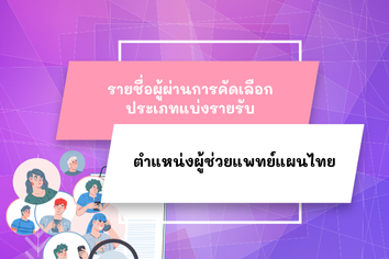ประกาศรายชื่อผู้ผ่านการคัดเลือก ตำแหน่งผู้ช่วยแพทย์แผนไทย